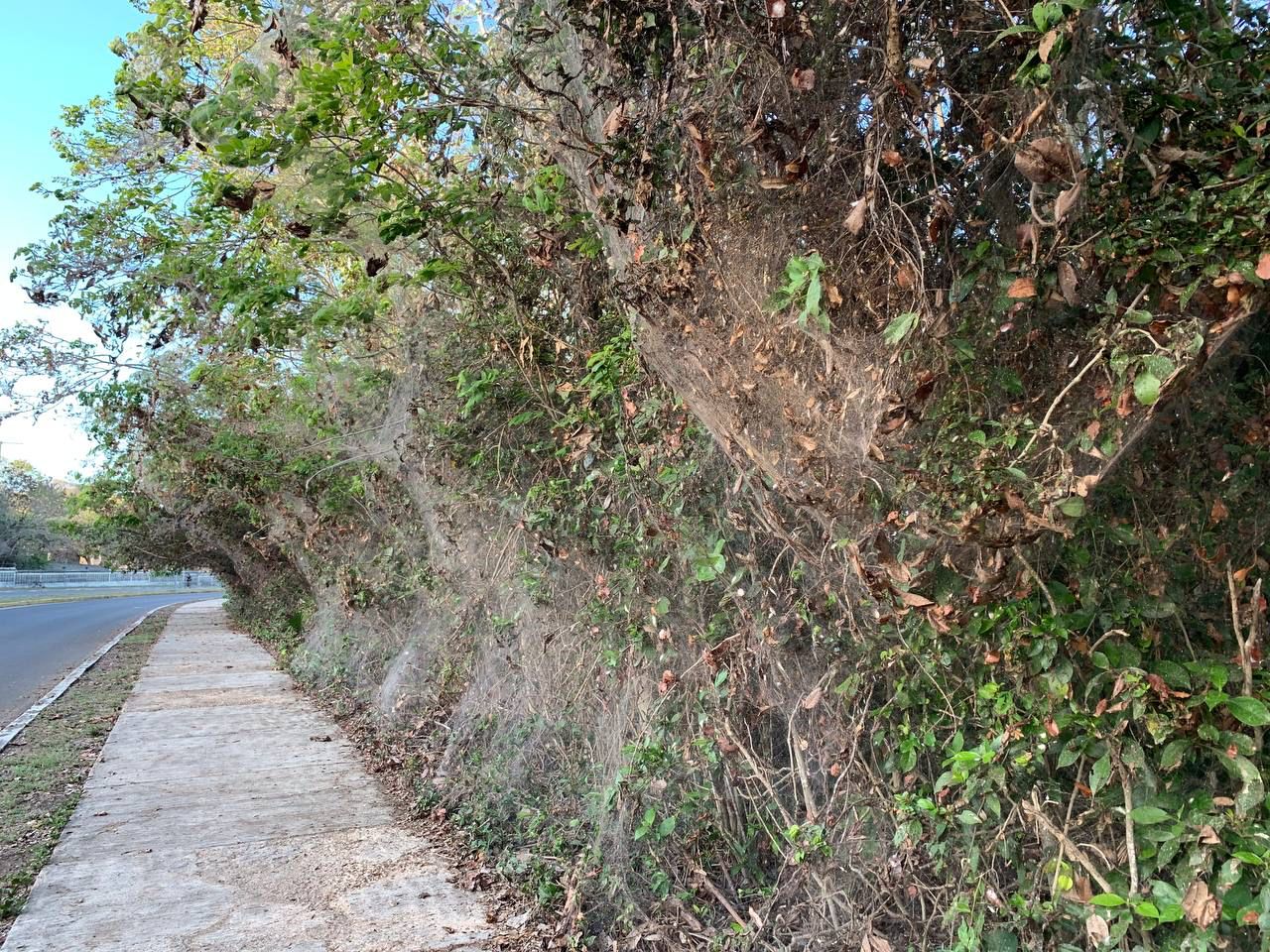 La directora municipal de Medio Ambiente y Ecología de Othón P. Blanco, Alondra Yaxibi Martínez Flores, explicó que desde hace varios meses la presencia del mosco bobo se ha intensificado y en las últimas semanas esto ha producido enormes telarañas que cubren numerosas especies de arbolado en la zona cercana a la Bahía de Chetumal.