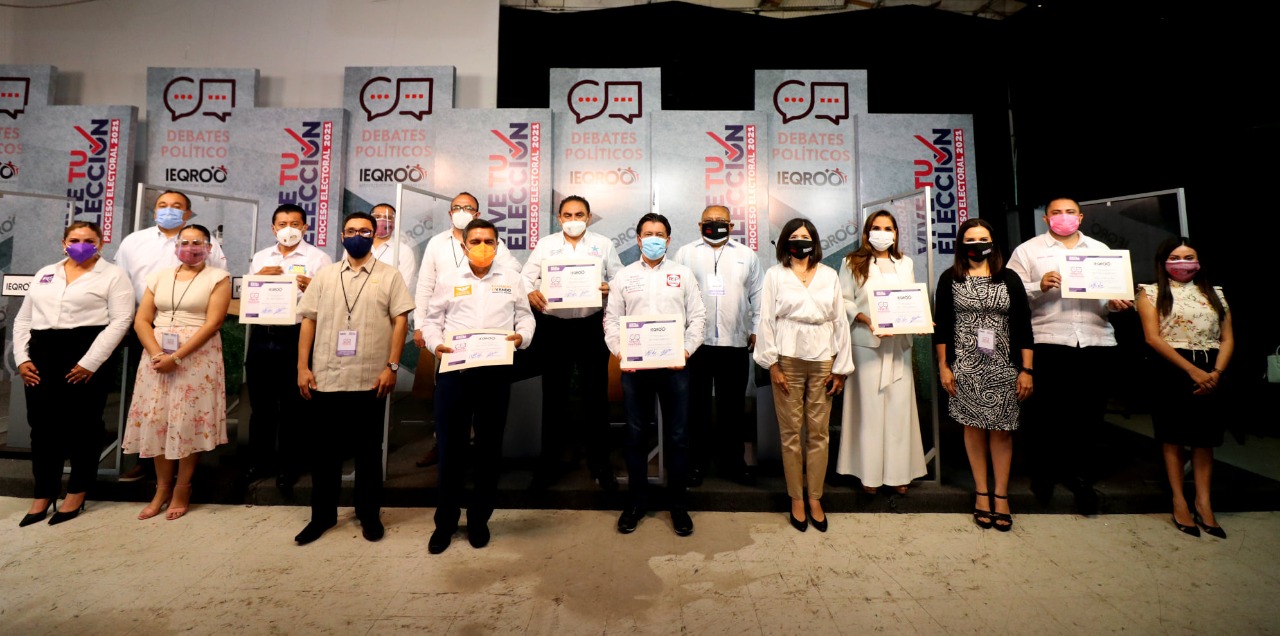 A las 18 horas, en el debate correspondiente al municipio de Benito Juárez, participaron los siguientes candidatos: Carlos Balmaceda Ostos, de Redes Sociales Progresistas (RSP); Eduardo Ovando Martínez, Movimiento Ciudadano; Jesús Pool Moo, de la candidatura común de los partidos Acción Nacional (PAN), de la Revolución Democrática (PRD) y Confianza por Quintana Roo; Mara Lezama Espinosa, de la coalición Juntos Haremos Historia en Quintana Roo; María Guadalupe Alcocer Espadas, del Partido Encuentro Solidario (PES); Issac Janix Alanis, de Fuerza por México; Jorge Rodríguez Méndez, del Partido Revolucionario Institucional (PRI) y el candidato independiente Erick Estrella Matos.