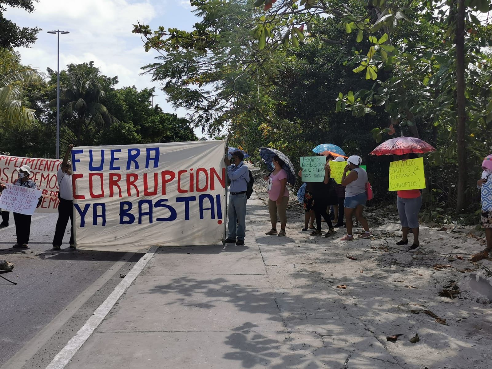 Por espacio de una hora, pobladores de colonias irregulares de Cancún se manifestaron la mañana de este jueves en el kilómetro cero de la zona hotelera de Cancún, como medida de presión contra la Comisión Federal de Electricidad (CFE) para exigir la desaparición de los comités de cobro vecinales por altos costos en los servicios, por lo que tuvo que intervenir la secretaria general del Ayuntamiento de Benito Juárez, Flor Ruiz.