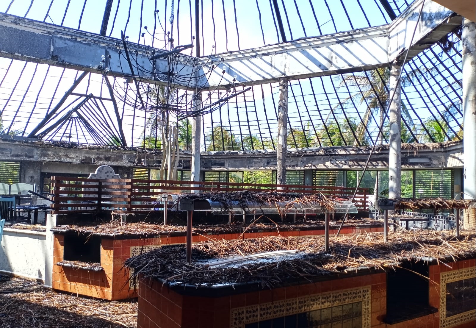 A cenizas quedaron reducidas dos palapas del área de restaurantes del hotel Bahía Príncipe, hecho que por fortuna no dejó personas lesionadas, sólo daños materiales.