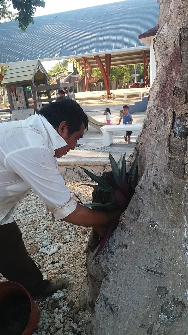 Precisó que llevan a cabo reforestación de flora autóctona de los parques centrales de Macario Gómez y Francisco Uh May, gracias a sus delegados Beatriz Ramírez López y Pascual Balam, respectivamente.