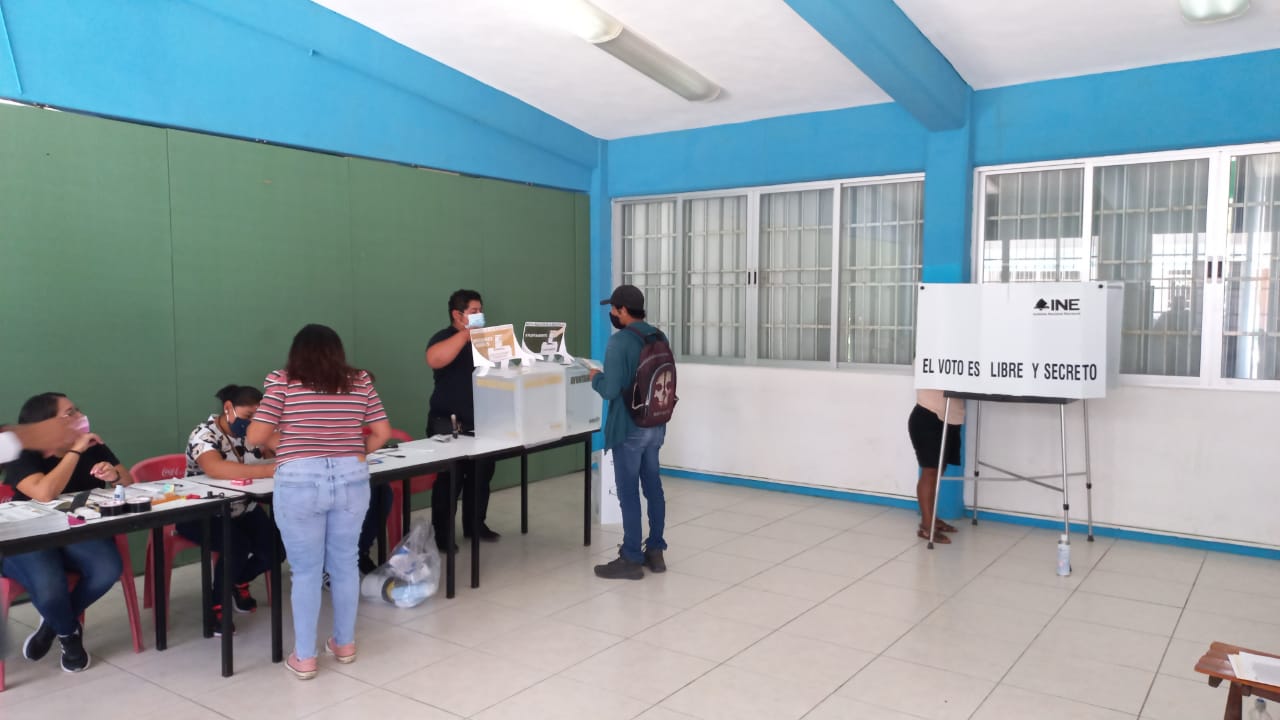 El candidato a presidente municipal de la alianza Morena-PVEM-PT-MAS, Marciano Dzul Caamal, acudió a emitir su voto a la casilla de la sección electoral 939, instalada en el Domo de la Unidad Deportiva en la cabecera municipal.
