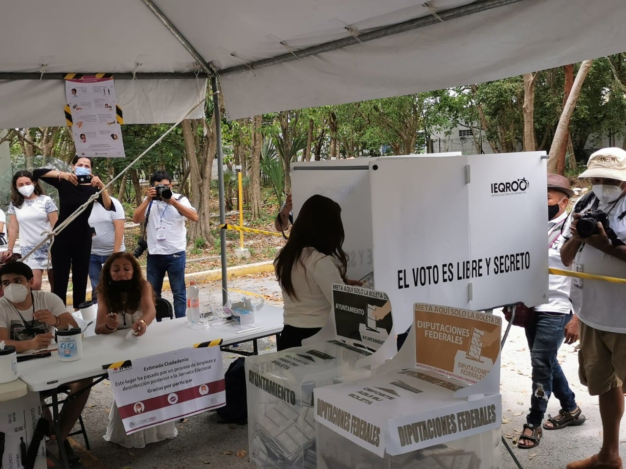 Le tocó votar en la casilla ubicada en la Casa de la Cultura de Cancún ubicada sobre la avenida prolongación Yaxchilán, sección electoral 146, del distrito electoral federal 04 y local 08; donde fue recibida por los funcionarios de casillas, quienes en todo momento observaron todas las medidas de seguridad sanitaria para evitar contagios por Covid-19.