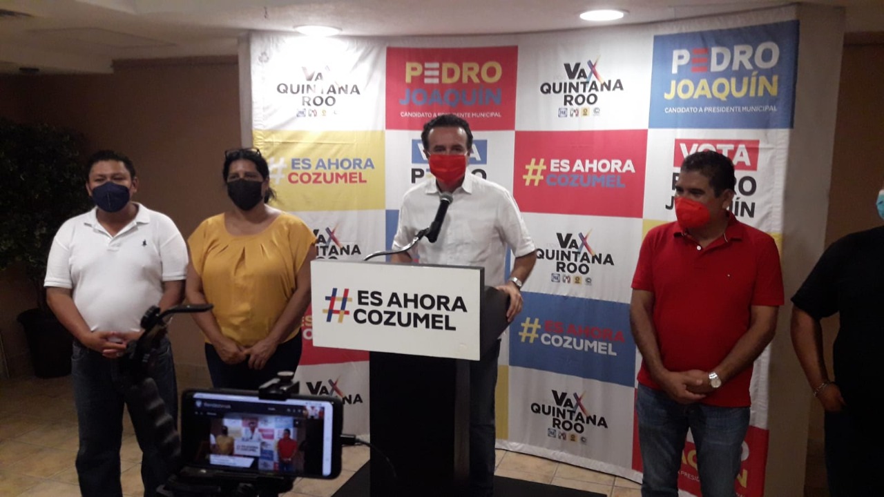“Después de 45 días de campaña donde tocamos y saludamos a los cozumeleños, hoy se llevó a cabo la jornada electoral, donde las encuestas de salida que hoy tenemos en Cozumel, nos da una ventaja inalcanzable”, dijo en conferencia de prensa el candidato del PAN-PRI-PRD-CPQ, Pedro Joaquín Delbouis.