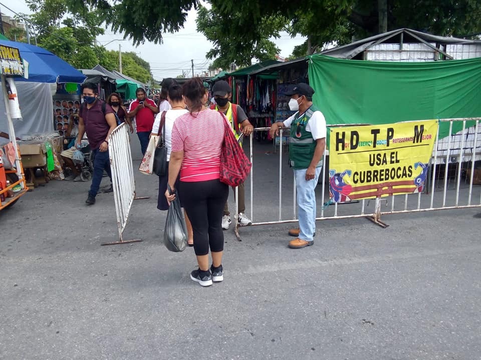 Una de estas acciones en la zona norte es la operación en “burbuja sanitaria”, que se lleva a cabo en Punta Cancún y en los tianguis del municipio de Benito Juárez.