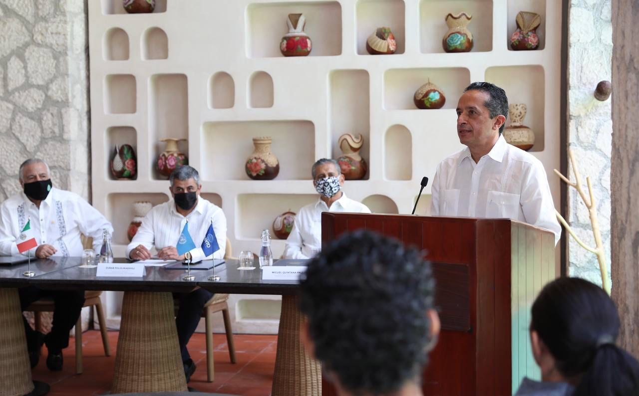 El encuentro del secretario general de la OMT y el gobernador de Quintana Roo forma parte de un seguimiento a temas planteados en 2019 en Madrid, España, como la presentación del Plan Maestro de Turismo Sustentable Quintana Roo 2030, que contempla acciones como el seguro paramétrico para la protección de arrecifes y playas en caso de huracanes y la gestión como producto turístico sostenible.
