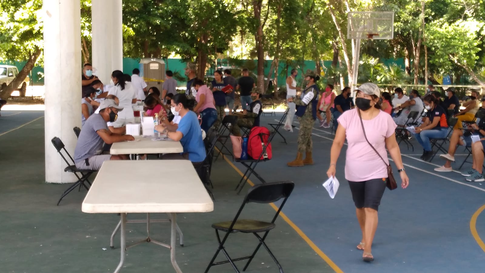 Mientras tanto, en Tulum se llevó a cabo el primer día de la aplicación de segundas dosis de la vacuna Sinovac para adultos de 40 a 49 años en el domo doble de la Unidad Deportiva.