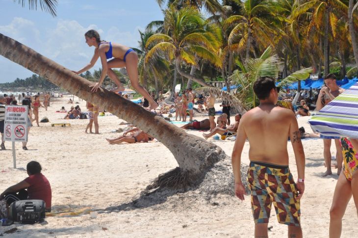 “Con el afán de evitar riesgos, y no permitir que los turistas se suban y lastimen la palma, vamos a platicar con los propietarios de los predios para poner unas bancas para tomarse las fotos o establecer un acordonamiento para que los turistas no abusen de la palma, así pueden tener una fotografía de algo emblemático que tenemos en las playas de Tulum”, comentó.