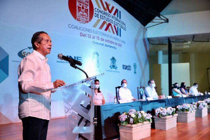 El gobernador de Quintana Roo participó en la ceremonia de clausura del 32 Congreso Internacional de Estudios Electorales, que se celebró del 12 al 15 de octubre en las instalaciones de la Universidad de Quintana Roo (Uqroo).