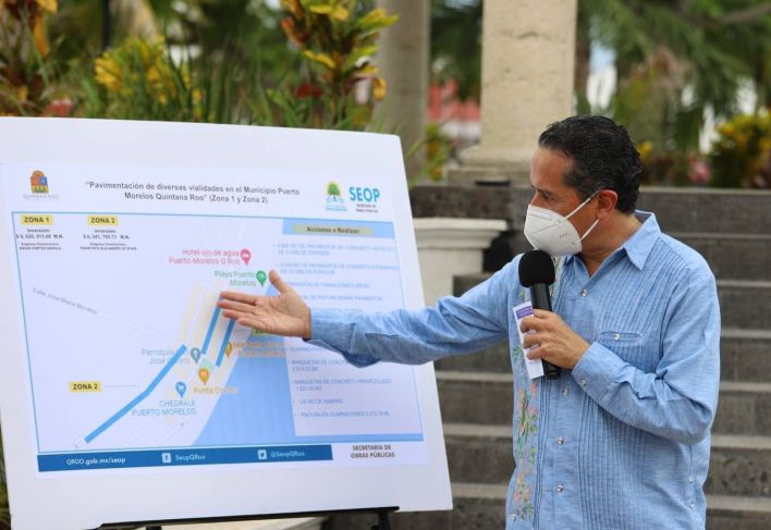 Durante un recorrido de trabajo, el gobernador de Quintana Roo, Carlos Joaquín en compañía de la presidenta municipal, Blanca Merari Tziu Muñoz y autoridades estatales, anunció a los habitantes del municipio Puerto Morelos que en breve la Secretaría de Obras Públicas (SEOP) iniciará la ejecución de la obra de pavimentación de diversas vialidades.