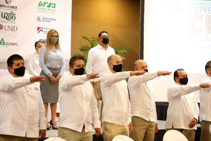 Lenin Amaro Betancourt y la Mesa Directiva del Consejo Coordinador Empresarial de la Riviera Maya (CCERM) rindieron protesta el viernes ante el pleno de los agremiados e invitados especiales para el periodo 2021-2022; se trata de la segunda relección consecutiva en esta cámara.