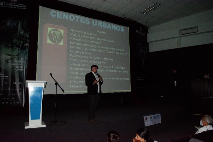 Con la conferencia magistral “Se exploran cuevas a domicilio: Proyecto Cenotes Urbanos”, del biólogo Roberto Rojo García, inició en el planetario Sayab de Playa del Carmen el XV Congreso Mexicano de Espeleología, que se llevará a cabo del 29 de octubre al 2 de noviembre.