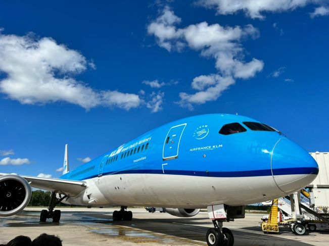 Este porcentaje de combustible sostenible para aviación se compró para operar el primer vuelo de KLM a Cancún con salida desde el aeropuerto Schiphol en Ámsterdam.