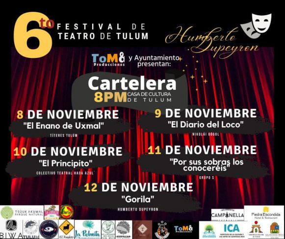 Las funciones tendrán lugar a las 20 horas en la casa de la cultura de Tulum y el programa del evento, así como más detalles de las obras están disponibles en la página de Facebook.
