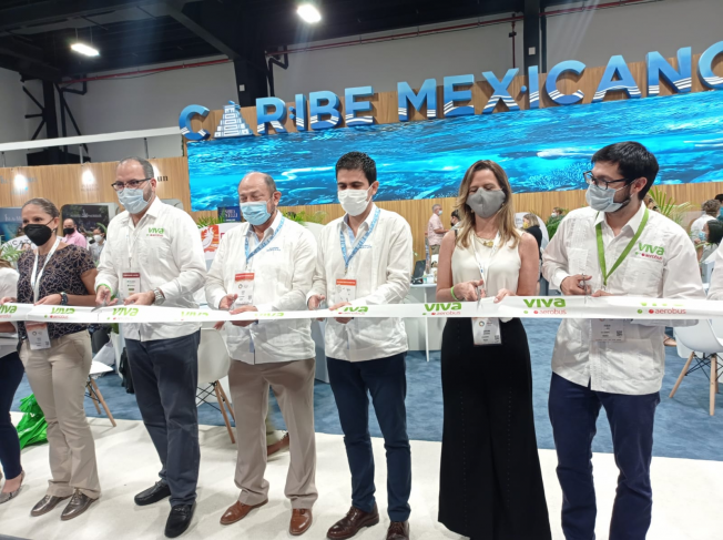 En el corte de listón estuvieron Andrés Aguilar; el director general del CPTQ, Darío Flota Ocampo; la directora ejecutiva de Promoción del CPTQ, Lizzie Cole; la directora de ProColombia, Adriana Gutiérrez, así como los representantes de VivaAerobus: la directora de Mercadotecnia, Karla Vargas; la directora de Ventas, Andrea Rodríguez; el director de Planeación de Rutas, Ruben López y el director de Comunicación, Walfred Castro.