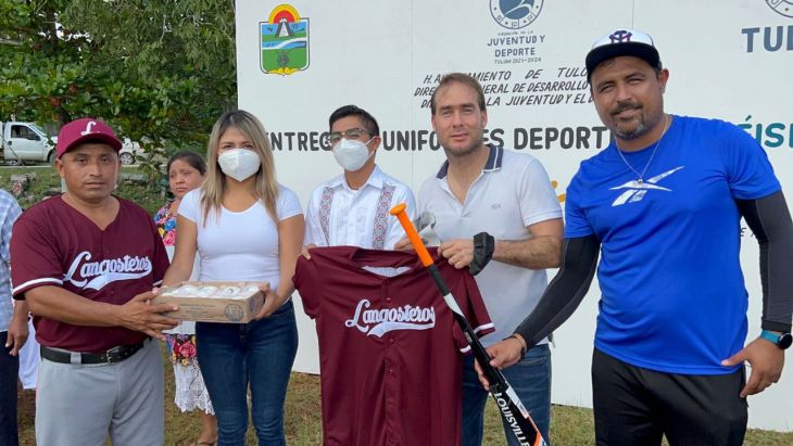 Los equipos que conforman la Liga de Béisbol de Tulum recibieron uniformes y equipo deportivo como parte de una gestión que realizó el presidente municipal Marciano Dzul Caamal que busca impulsar el deporte en la zona maya.