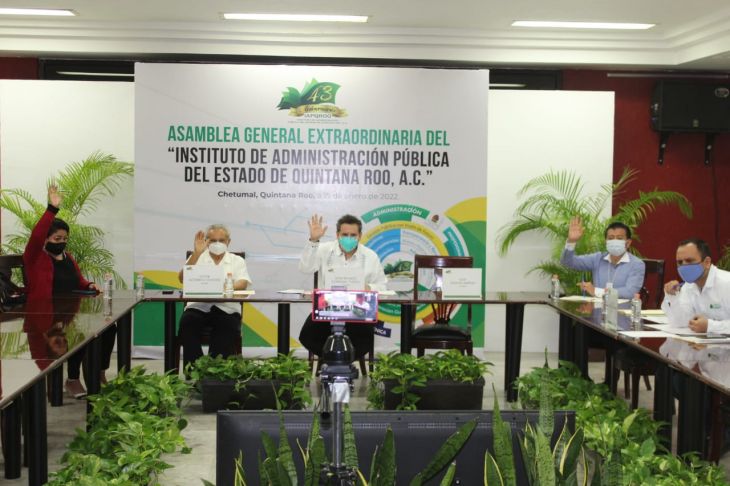Los asociados del Instituto de Administración Pública del Estado de Quintana Roo AC (Iapqroo) de manera presencial y virtual en su mayoría aprobaron por unanimidad la renovación del consejo directivo para el periodo 2021-2024, religiendo a los integrantes del mismo, encabezando la presidencia de dicho consejo León Ricardo Lizárraga Cubedo.