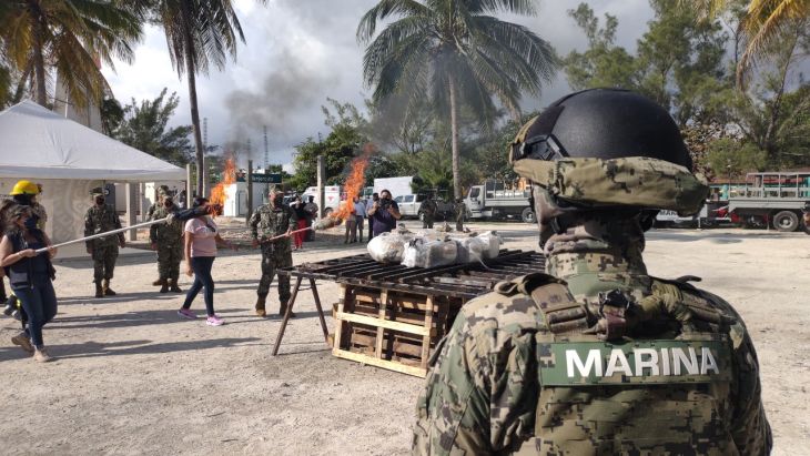 La Secretaría de Marina (Semar) informó que en el marco del Plan Nacional de Paz y Seguridad, en las instalaciones de la Estación Naval de Puerto Juárez se llevó a cabo el miércoles la incineración de un peso neto de 91.64 kilogramos de cocaína, producto de diversos aseguramientos realizados en Playa del Carmen y Puerto Aventuras durante el año 2021.