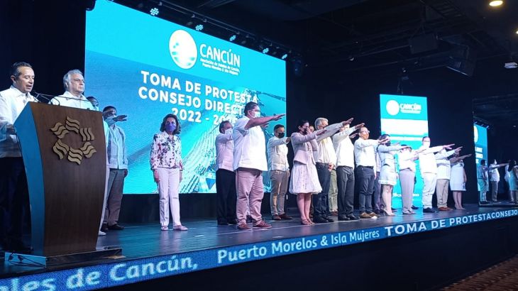 Jesús Almaguer Salazar tomó protesta este viernes como presidente de la Asociación de Hoteles de Cancún, Puerto Morelos & Isla Mujeres para el periodo 2022-2025, en conjunto con los integrantes de su consejo consultivo, que son prácticamente los mismos que acompañaron a Roberto Cintrón, presidente saliente, durante su gestión.