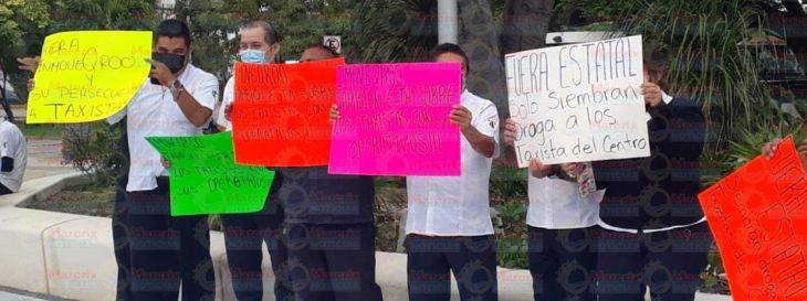 La mañana de este martes alrededor de 30 taxistas del sindicato Andrés Quintana Roo se manifestaron en la explanada del palacio municipal de Benito Juárez para exigir que cesen los operativos de la policía estatal en su contra.