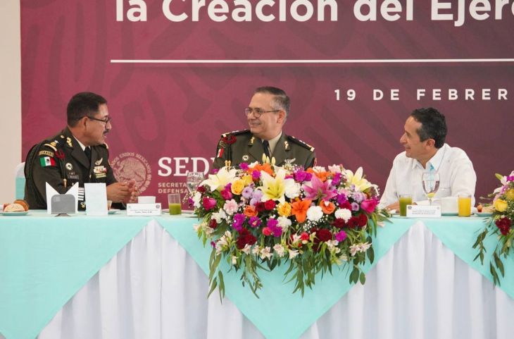 En el marco del aniversario 109 de la creación del Ejército Mexicano, el gobernador de Quintana Roo, Carlos Joaquín, compartió un desayuno conmemorativo con hombres y mujeres de la corporación en la entidad, en la zona continental de Isla Mujeres.