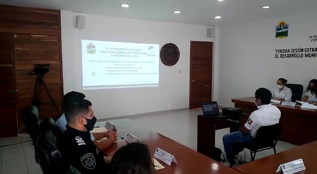 Carmen Sarahí Aramayo Figueroa, directora general de Planeación, explicó que presentaron ante el Comité de Planeación para el Desarrollo Municipal el Plan Municipal de Desarrollo 2021-2024, el cual contemplan los cinco ejes: Tranquilidad para ti y tu familia, Unidos podemos, Limpio y mágico, Un gobierno de todos, útil para ti y Municipio de todos, próspero y ordenado, que se manejaron desde la consulta ciudadana y los mecanismos que establece la ley del estado de Quintana Roo en esta materia.