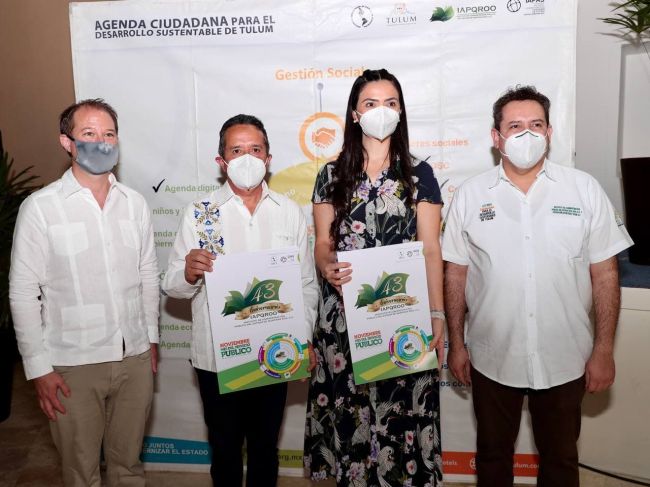 Tras 10 meses de trabajo, más de 200 reuniones y una inversión de 9 millones de pesos de la iniciativa privada, este martes fue entregado a autoridades municipales, estatales y representantes del poder Legislativo la Agenda Ciudadana para el Desarrollo Sustentable de Tulum, de parte de la Asociación de Hoteles de Tulum, representada por su presidente, David Ortiz Mena, y el Instituto de Administración Pública del Estado de Quintana Roo (Iapqroo), dirigido por León Lizárraga Cubedo.