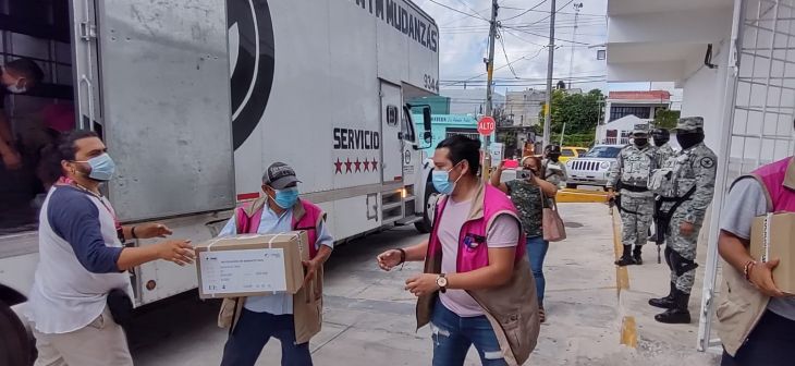 Custodiado por la Guardia Nacional, Secretaría de la Defensa Nacional y Marina, durante las primeras horas de este domingo arribó a Quintana Roo el material electoral que será utilizado el próximo 10 de abril para la consulta de revocación de mandato del presidente de la república.