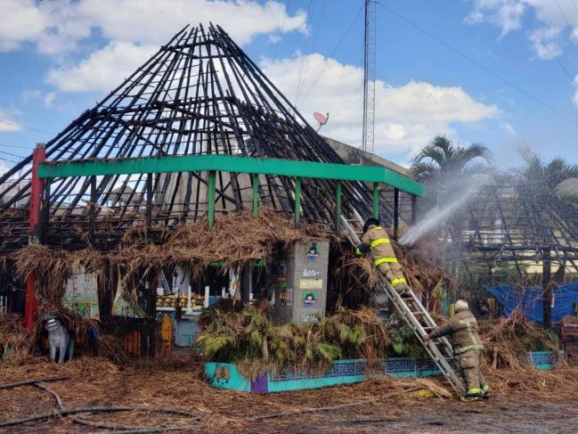 De acuerdo con información del ayuntamiento, un corto circuito en el centro de carga eléctrica generó las llamas, que consumieron la palapa principal de este popular restaurante, que cuenta con otra sucursal en la ciudad.