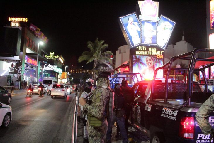 Unos 300 elementos de la Guardia Nacional (GN), Secretaría de la Marina (Semar), Secretaría de la Defensa Nacional (Sedena) y Policía Turística de Benito Juárez realizan el operativo Spring Break Cancún 2022 realizando recorridos en bares y discotecas de la zona hotelera. Al operativo se suma la Dirección del Grupo Especializado en Atención de la Violencia Familiar y de Género (GEAVI), así como Protección Civil del municipio.