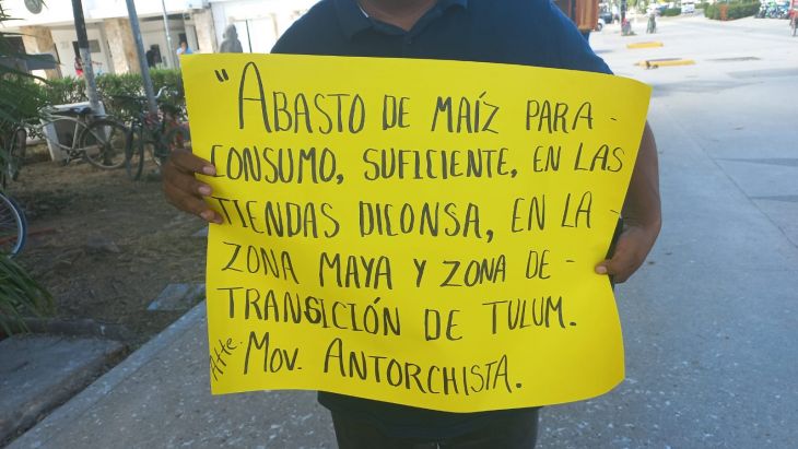 Como se llevó a cabo a nivel estatal de manera simultánea, alrededor de 20 habitantes de la colonia Antorchista de Tulum se manifestaron en la explanada del palacio municipal para quejarse por incumplimientos del gobierno estatal a sus necesidades de vivienda.