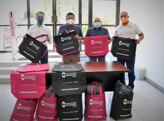 Como parte del presupuesto asignado a seis consejeros del Instituto Nacional Electoral (INE) en Quintana Roo, se invirtió en la impresión de bolsas ecológicas, con el objetivo de promover la participación ciudadana en la consulta de revocación de mandato del próximo 10 de abril.