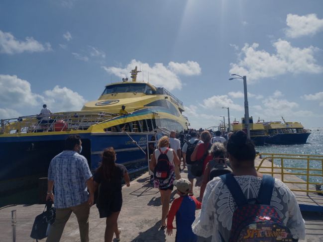 Con el arranque oficial de uno de los fines de semana más importante para el sector turístico, por ser temporada alta, la terminal de ferry de Puerto Juárez para cruzar a Isla Mujeres y viceversa luce totalmente llena.