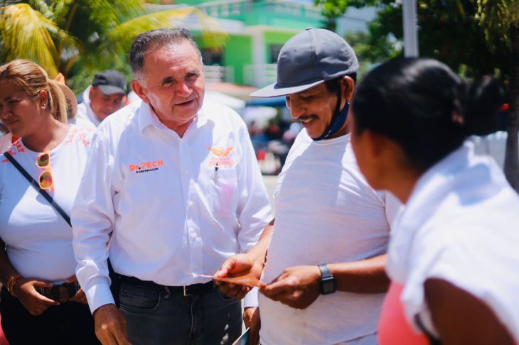 Al realizar un recorrido por el tianguis de la Colosio, en el que entregó volantes con sus propuestas de gobierno, José Luis Pech recibió manifestaciones de apoyo y escuchó varias inquietudes ciudadanas, como es la falta de regularización de predios.