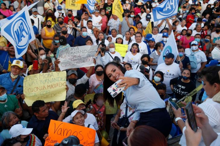 Con el respaldo de más de 3 mil personas, Laura Fernández Piña, candidata a gobernadora por la coalición Va por Quintana Roo, encabezó un mitin en la Plaza de la Reforma, donde afirmó que no la van a callar mientras siga habiendo carencias y violencia que afecten a las mujeres y sus familias. “Nos quieren acostumbrar a lo malo, pero no lo vamos a permitir”, subrayó.