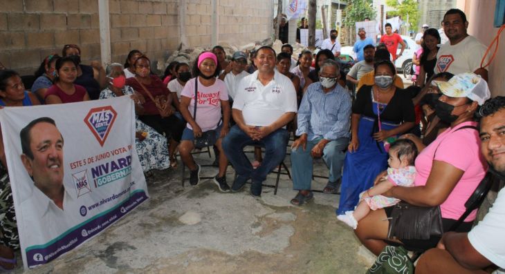 Ya en reunión con sus simpatizantes, Nivardo Mena les recordó que ha estado con ellos desde la pandemia, aunque no ha podido ayudar a todos, porque los recursos son limitados, pero si lo ayudan a llegar a la gubernatura, el proyecto alimentario y de medicamentos será permanente.