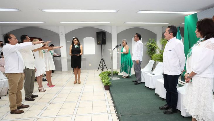 El gobernador Carlos Joaquín asistió hoy a la ceremonia de toma de protesta del Consejo Directivo 2022 de la Asociación Mexicana de Profesionales Inmobiliarios (AMPI) sección Chetumal y atestiguó la firma de un convenio con la Canaco Servytur Chetumal.