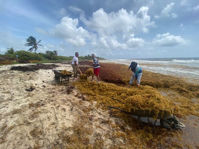 Aproximadamente se recolectó una tonelada de sargazo y alrededor de 50 kilos de microplásticos que estaban en la franja costera. El área es zona de anidación de la tortuga marina, por lo que es prioridad darle saneamiento al sargazo que perjudica el arribo de dicha especie.