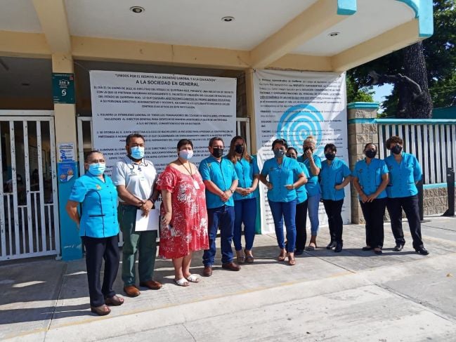 Los trabajadores del Colegio de Bachilleres que están en el área operativa, empleados de confianza, desde directores, coordinadores, hasta secretarias, laboratoristas, entre otros, denunciaron recortes a sus salarios y retiro de prestaciones, por lo cual se manifestaron a las afueras del plantel 4 de Cancún.