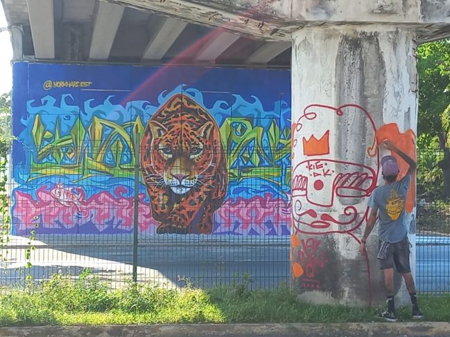 La entrada del poblado Chemuyil luce una imagen urbana después de que más de 15 artistas del colectivo Pinta o muere plasmaran su arte en el puente del poblado con murales representativos de la cultura y naturaleza de la región.
