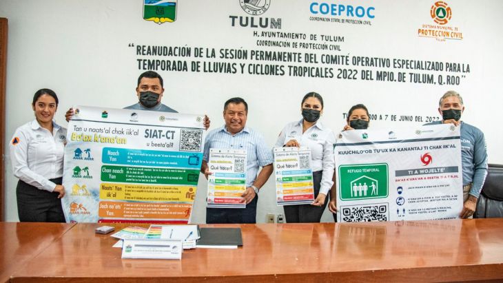 El presidente municipal de Tulum, Marciano Dzul Caamal, encabezó el martes la reanudación de la Sesión Permanente del Comité Operativo Especializado para la Temporada de Lluvias y Ciclones Tropicales 2022, misma en la que los integrantes afianzaron estrategias integrales de acciones preventivas y atención a seguir en caso de algún fenómeno hidrometeorológico que afecte al paraíso turístico de Tulum.