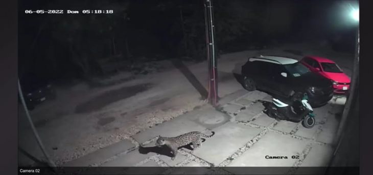 Y es que en las últimas horas en redes sociales se difundió la grabación de un jaguar que fue captado intentando cazar a un perro en la colonia La Veleta de Tulum. Se puede observar que el felino intenta cazar a un perrito, pero el can logró salir con vida. El sistema de videovigilancia de una vivienda muestra en la grabación que el hecho ocurrió alrededor de las 5 de la madrugada del pasado domingo 5 de junio.