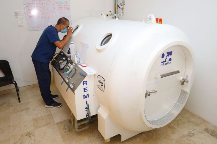 El Pabellón de Rehabilitación Pulmonar Post Covid-19, cuenta con equipo especializado de diagnóstico oportuno de las secuelas neuromusculares y respiratorias del SarsCov-2, el cual brindará oxigenoterapia en cámara hiperbárica basado en estudios realizados por la corporación “Andrés Urrea Palma” de Santiago de Chile, disminuyendo así la inflamación y previniendo las secuelas del Covid-19.