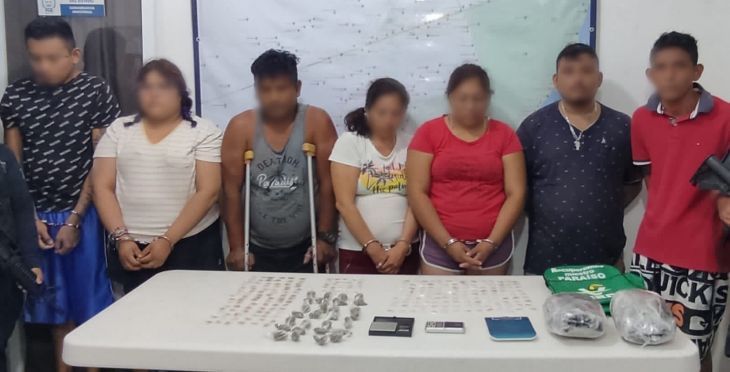 Los detenidos son: Maricela S., de 20 años; Concepción J., de 41 años; Belem J., de 25 años; José J., de 27 años (los cuatro originarios de Tabasco); Rene P., de 37 años, originario de Chiapas; Bernardo S., de 22 años, originario de Veracruz; y Luis L., de 23 años, originario de Quintana Roo.