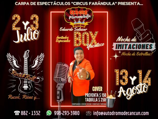 “Tenemos en puerta varios eventos, por lo menos uno cada mes, como uno circense en agosto, otro más en este julio, conforme termine un evento sacaremos la preventa del otro. La verdad es que lo hemos tenido cerrado bastante tiempo y es un lugar que en Cancún no hay y hay que darle movimiento y aprovechar el talento que tenemos”, destacó Anna Campo, directora de eventos, en conferencia de prensa ofrecida el viernes.