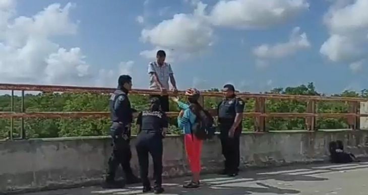 Elementos de la Secretaría de Seguridad Pública de Solidaridad impidieron que un hombre se lanzara al vacío desde un puente, la mañana de este jueves.
