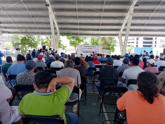 La diputada federal Carmen Bautista Peláez, presidente de la comisión de Pesca del Congreso de la Unión, se reunió con pescadores de Puerto Juárez como parte del 11º Foro Nacional de Pesca, para escuchar sus principales necesidades, entre las que destacaron la falta de permisos.