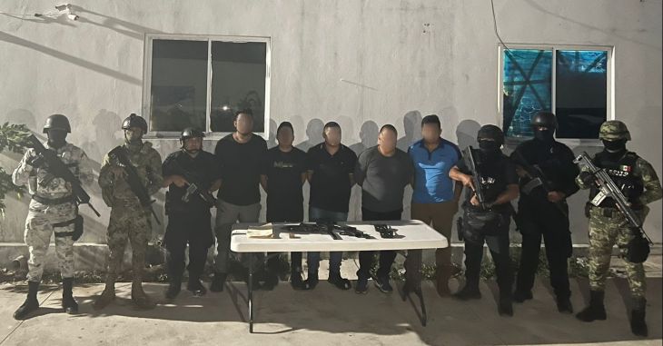 Al corroborar su procedencia ante el 34 Zona Militar, se determinó su inmediata detención. En seguimiento al caso, en un operativo terrestre coordinado con el Ejército Mexicano, la Guardia Nacional, Marina Armada de México, Policía Quintana Roo y la Fiscalía General del Estado, se logró ubicar y detener a cuatro masculinos más que presumiblemente intentaban cumplir con el presunto despojo a la propiedad privada.