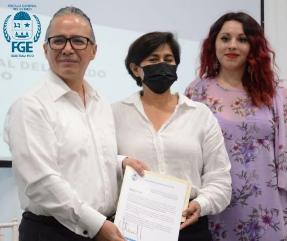 El titular de la Fiscalía General del Estado (FGE) de Quintana Roo, Óscar Montes de Oca, en compañía de Mario Machuca Sánchez, secretario general de la Confederación Revolucionaria de Obreros y Campesinos (CROC) en Cancún, entregó nombramientos a las 12 presidentes de los nuevos Comités de Procuración de Justicia, los cuales están integrados por cinco mujeres cada uno y representarán a 25 mil trabajadoras de los centros hoteleros afiliados a dicha organización.