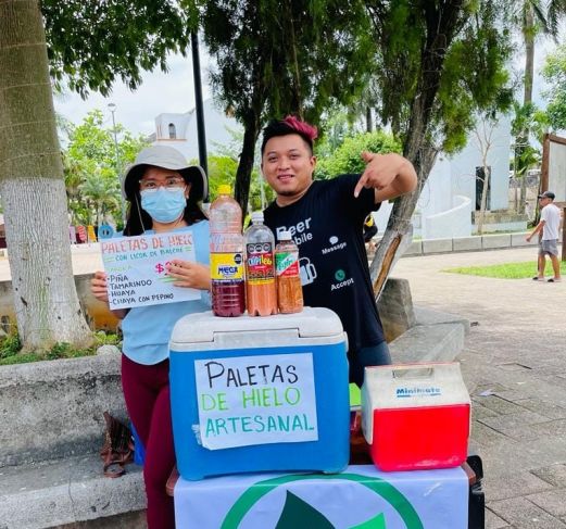 Los profesores Julio Tun Álvarez, María Elena Cuxim Suaste y Antonio Pat Cituk, junto con los alumnos que implementan la empresa: Karen Jiménez Castro, Cecilia Tox Aban, Deysi Pat Balam, Gladys Dzul Esquivel, Eduardo May y Eduardo Bautista, dieron a conocer la variedad de paletas con que cuentan, también platicaron sus experiencias, retos y oportunidades que están viviendo al pasar de una idea a un proyecto, y de un proyecto a una empresa real.